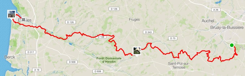 Arrivée au camping d’Olhain vers 7h30 où j’ai rejoins Jordan.