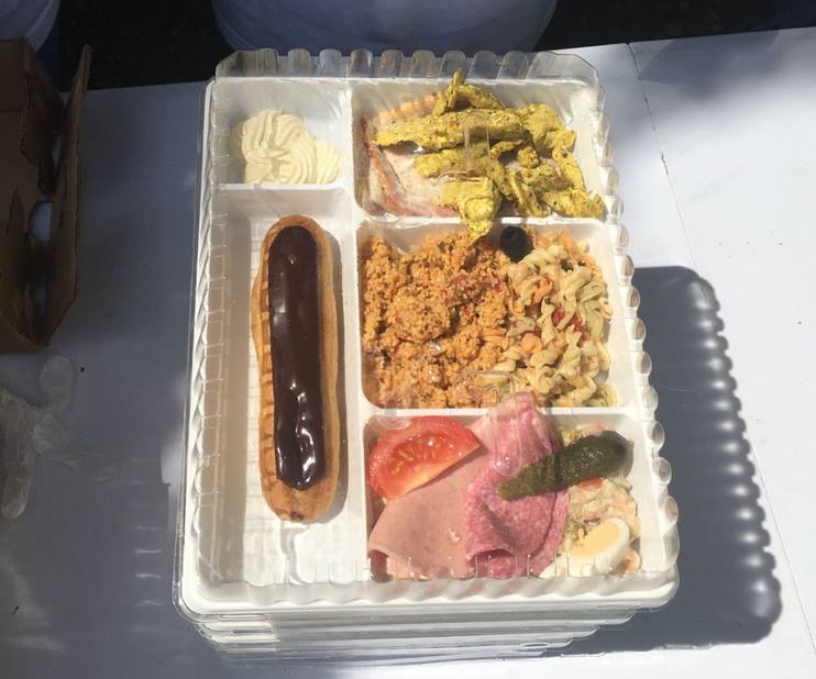 Le repas du midi à Blingel : j’ai tout mangé sauf, la charcuterie, macédoine, mayonnaise et fromage et bu 1 perrier.
